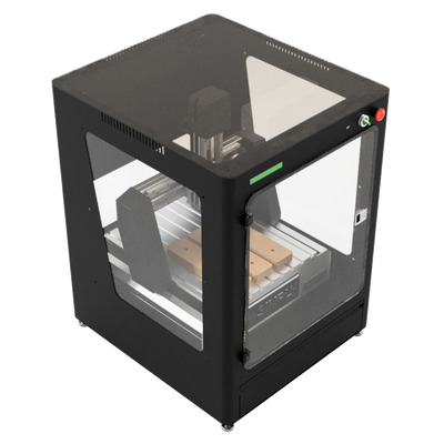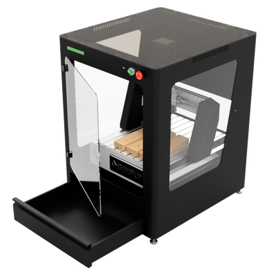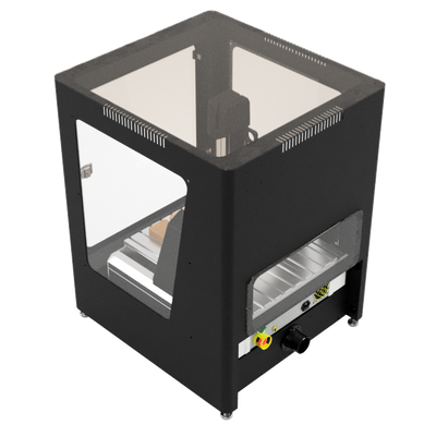 The Academy 1 is a compact, fully enclosed desktop CNC machine designed for makerspaces and small workshops. It features a 12” x 12” cutting area, a 1HP spindle, and an integrated dust shoe with external suction connection, delivering clean, quiet performance right from your workbench.